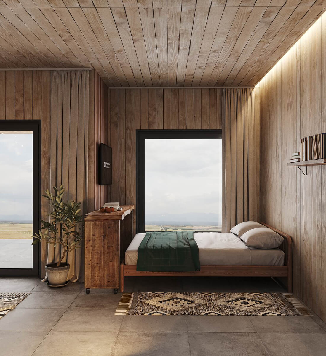 The result: a house where you can relax from urban life, enjoy the mountain landscapes and stay alone.