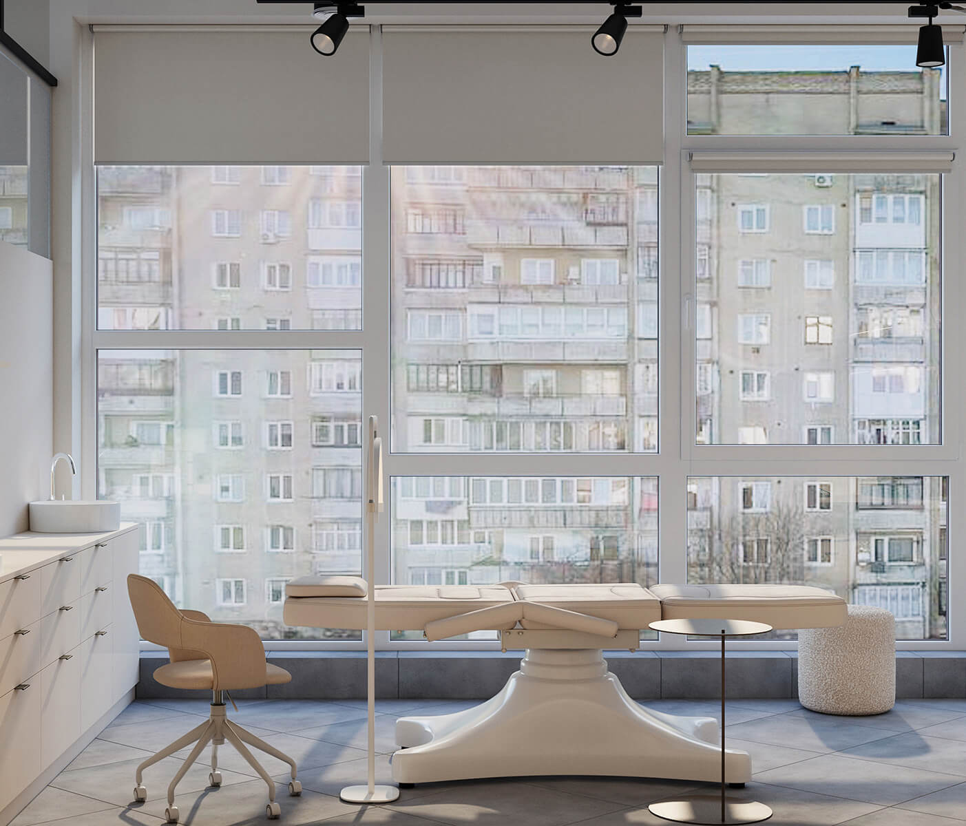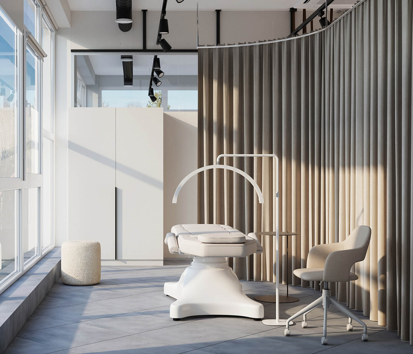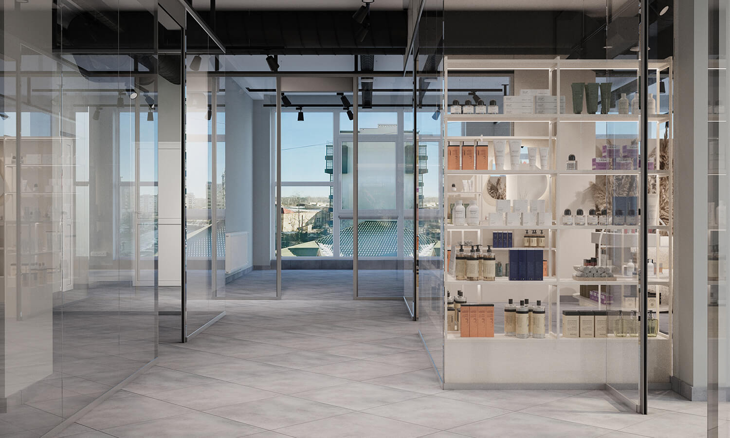 Результат: у цьому проєкті ми поєднали косметологічний кабінет і магазин у єдиному просторі. Завдяки продуманому зонуванню вдалося створити атмосферу легкості та затишку, де обидві функції гармонійно доповнюють одна одну.
