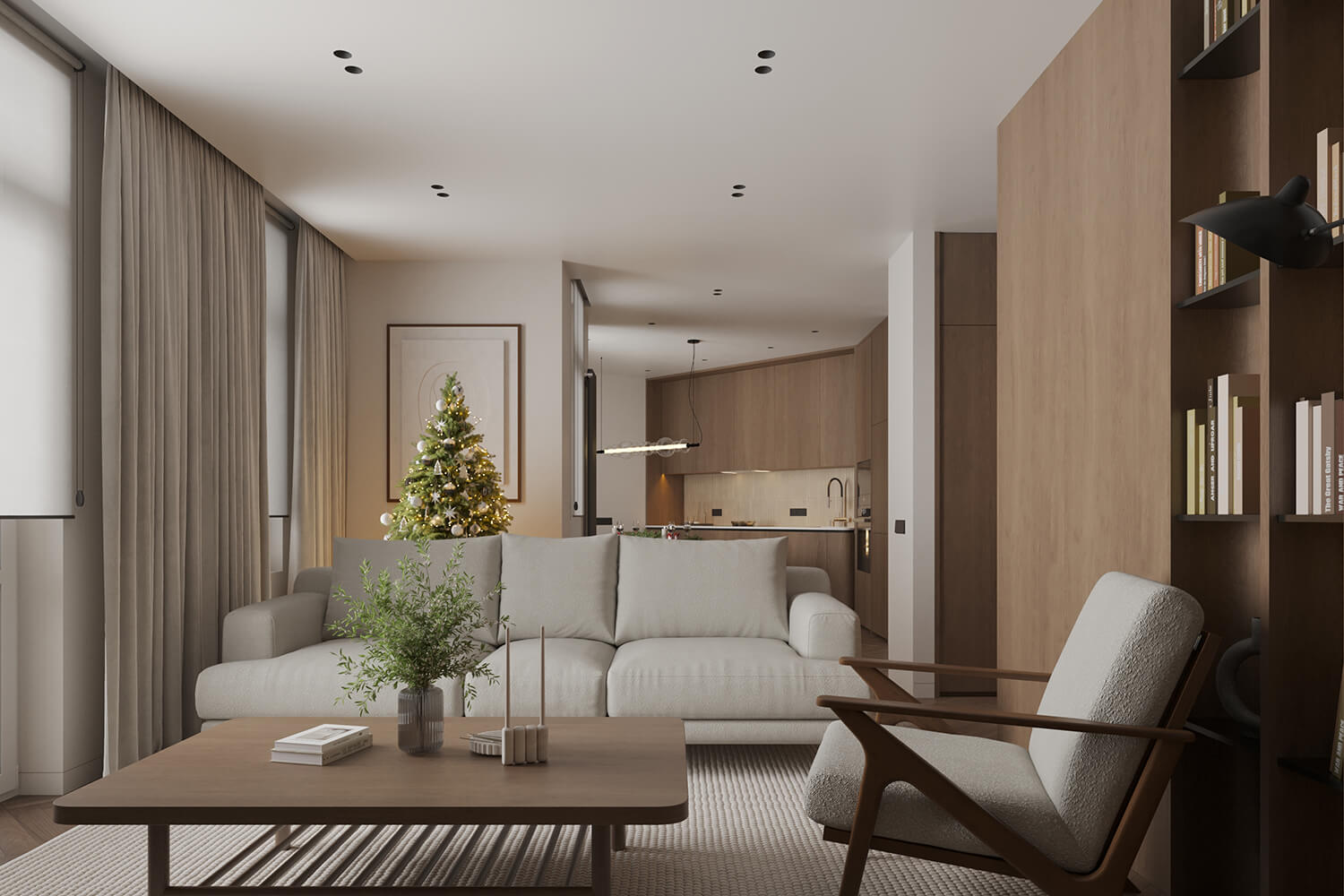 Проєкт поєднує функціональність, натуральні матеріали та стриману естетику — усе для комфортного життя без зайвого.